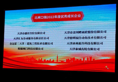 會(huì)議向2022年為天津市津南區(qū)北閘口鎮(zhèn)經(jīng)濟(jì)社會(huì)發(fā)展做出貢獻(xiàn)的企業(yè)表示感謝,般德閥門(mén)榮獲“2022年度優(yōu)秀成長(zhǎng)企業(yè)”稱(chēng)號(hào)。