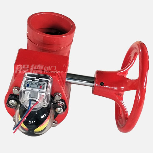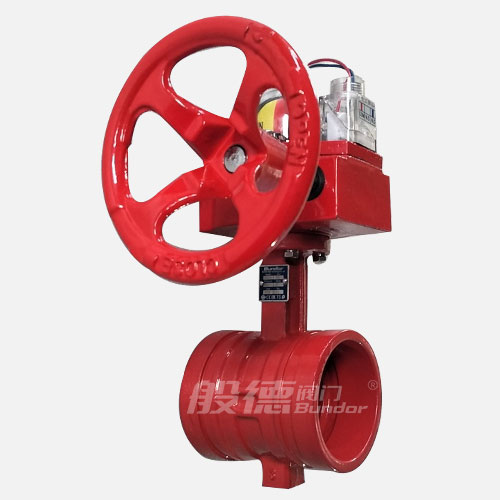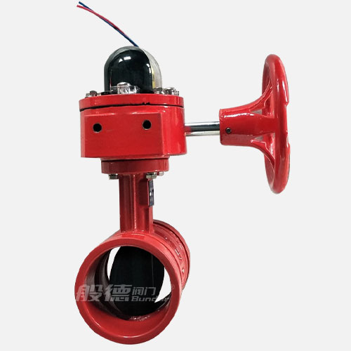 信號溝槽蝶閥采用蝸輪、蝸桿傳動,隨著凸輪轉動按預定位置將信號裝置上觸頭壓下或放開,相應輸出"通""斷"電信號,顯示蝶閥的啟閉狀態。